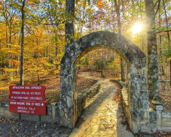 The AT Approach Trail is a 16 mile out and back difficult to strenuous hike located near Dawsonville. It boasts a waterfall and is accessible year-round. Dogs are also able to use this trail but must be kept on leash. Many backpackers favor this trail.
