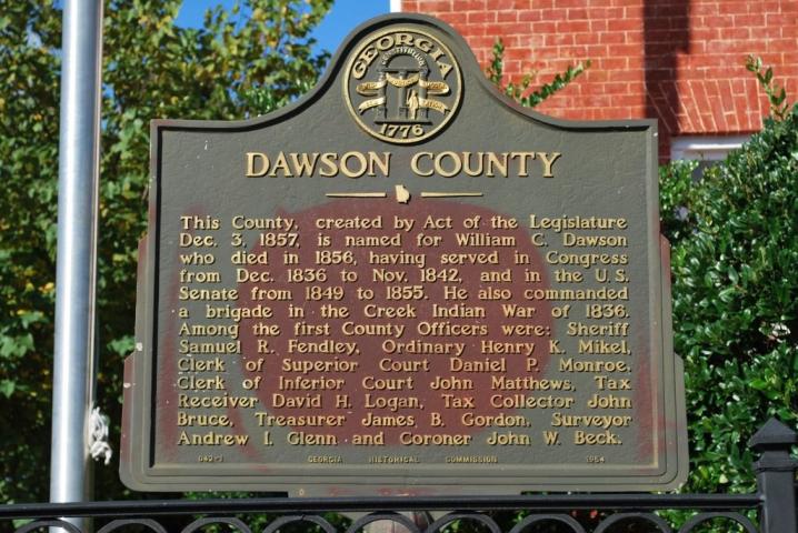 Dawson County was created by a legislative act on December 3, 1857, from portions of Lumpkin, Gilmer, Pickens, and Forsyth counties. Georgia’s 118th county (and the town of Dawsonville) was named in honor of Judge William C. Dawson, a father of the laws of Georgia and a commander of a brigade in the 1836 Creek Indian Wars. Judge Dawson served in the State Legislature, Congress, and the U.S. Senate.