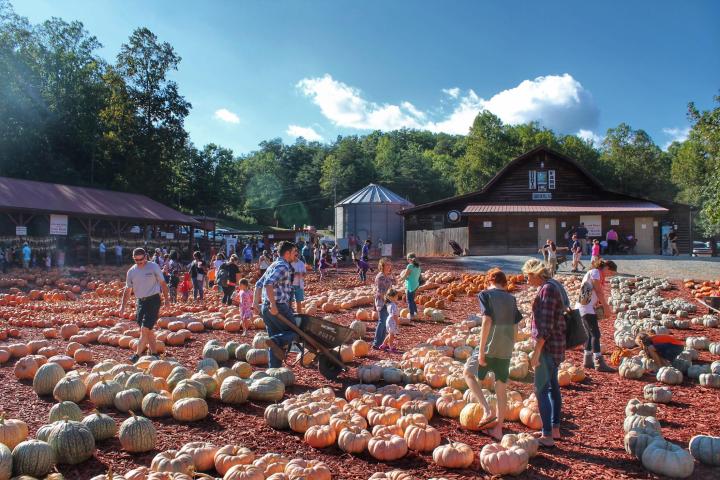 On a busy day, there are ten tractors and wagons that allow people to see fields of growing pumpkins. They also listen to a story told by Autumn and Gordy, a pair of one-of-a-kind animated pumpkins. The hayride ends on top of a mountain with a great view of Amicalola Falls and thousands of pumpkins in the farm yard.